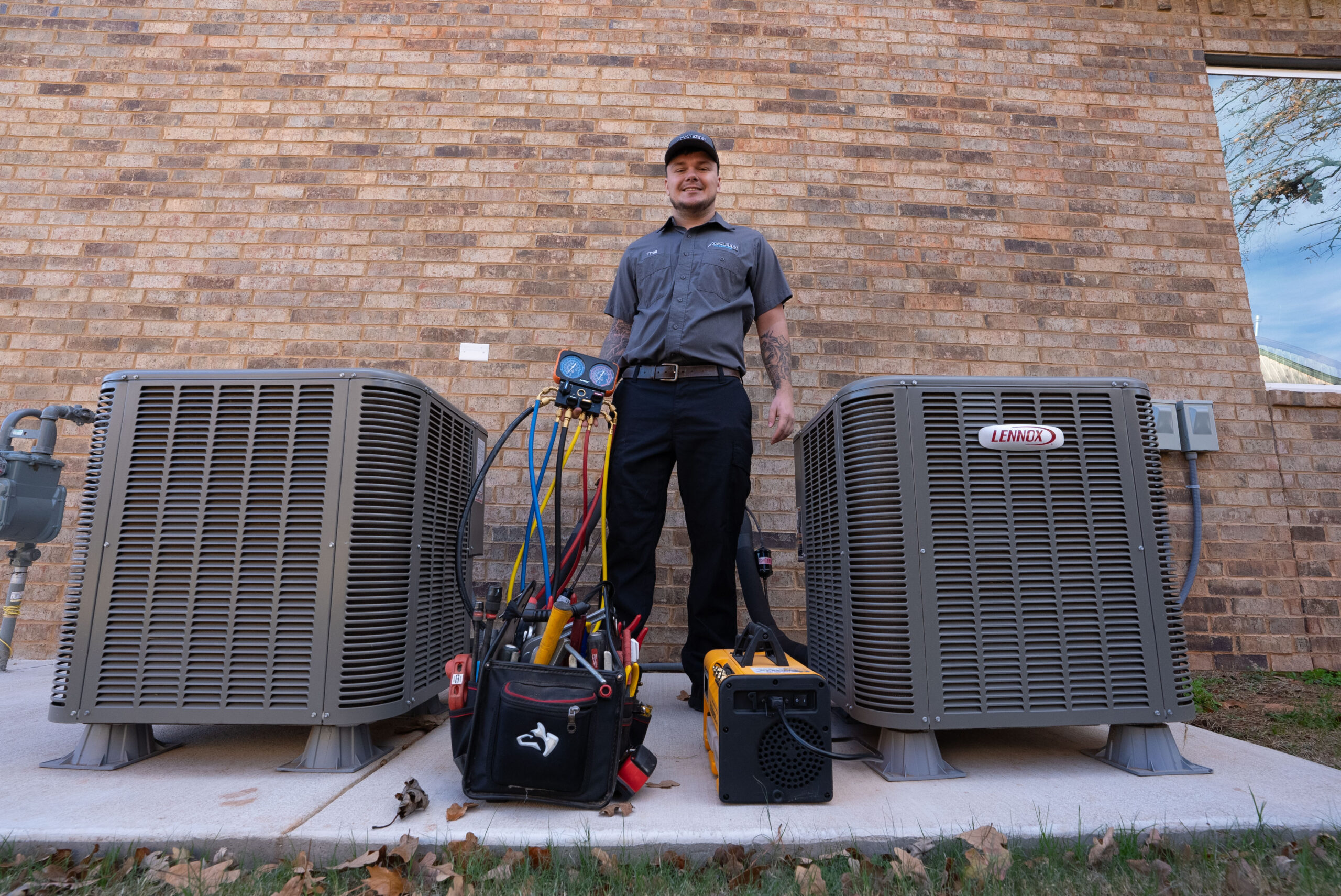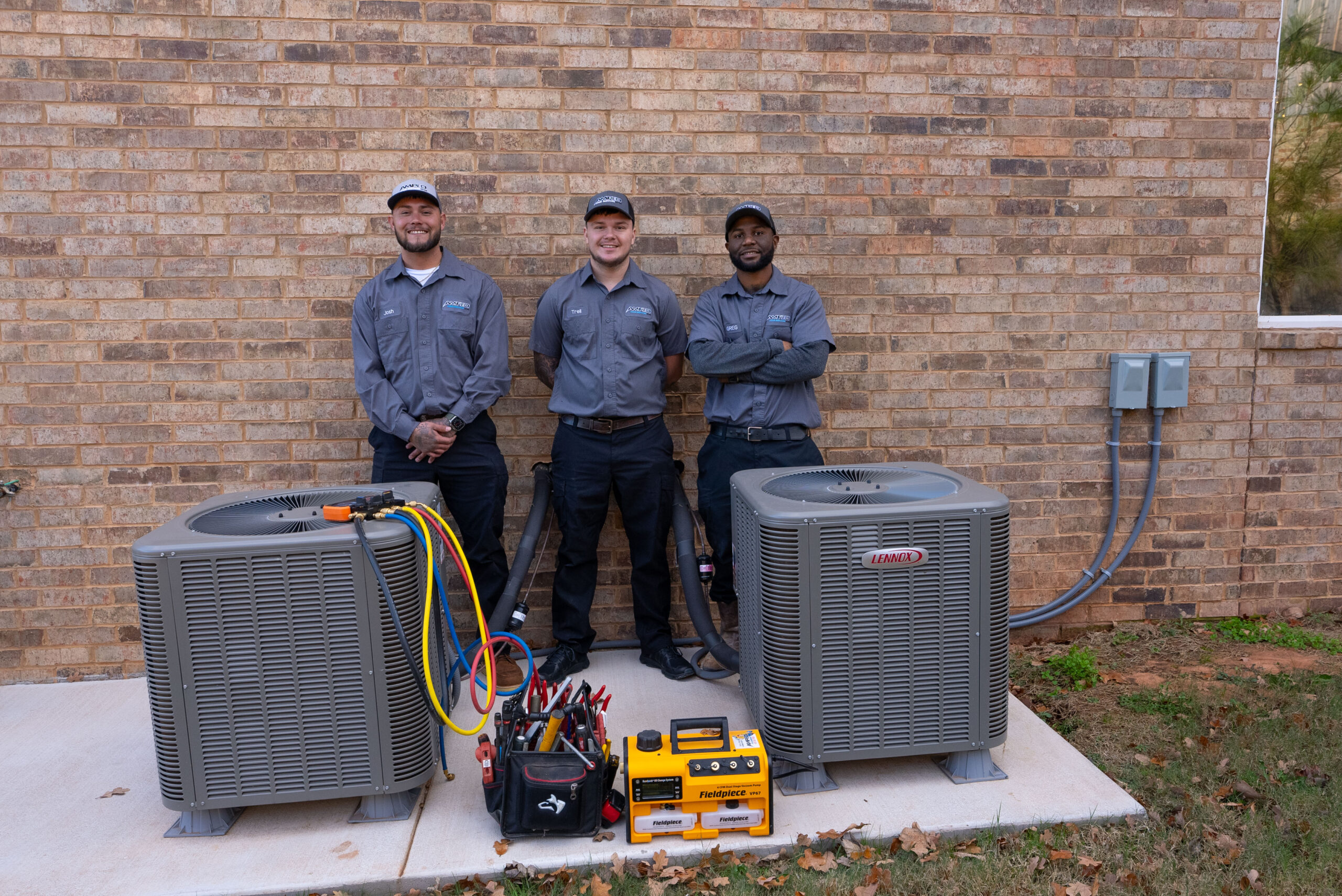 Photos of plumbing repairs, AC & heat pump service, heater installs, and security systems in OKC